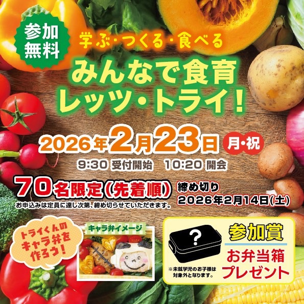 「学ぶ・つくる・食べる」を体験する食育イベントを開催します。お子さまと一緒に、楽しく食の大切さを学んでみませんか?